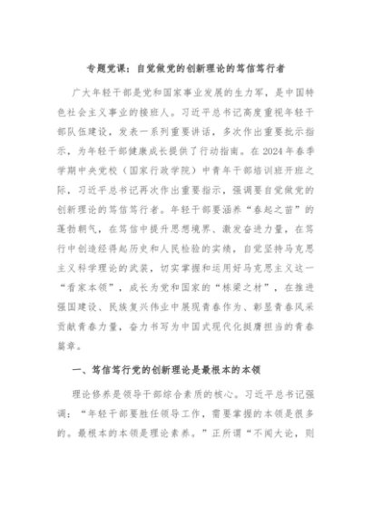 / 【七哥公文】2024年:专题党课:自觉做党的创新理论的笃信笃行者+更多免费公文+VX:QiGeGongWen2024