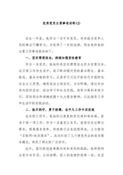 / 【七哥公文】2024年:优秀党员主要事迹材料(2)+更多免费公文+VX:QiGeGongWen2024