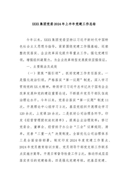 / 【七哥公文】2024年:XXXX集团党委2024年上半年党建工作总结+更多免费公文+VX:QiGeGongWen2024