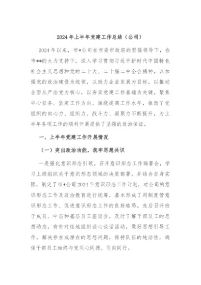 / 【七哥公文】2024年:2024年上半年党建工作总结(公司)+更多免费公文+VX:QiGeGongWen2024