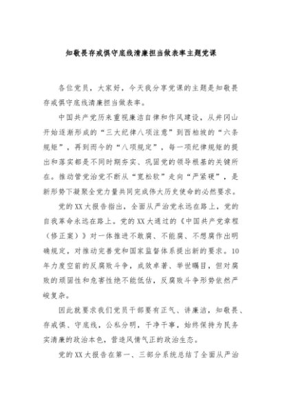 / 【七哥公文】2024年:知敬畏存戒惧守底线清廉担当做表率主题党课+更多免费公文+VX:QiGeGongWen2024