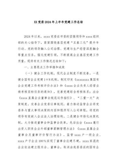 / 【七哥公文】2024年:XX党委2024年上半年党建工作总结+更多免费公文+VX:QiGeGongWen2024