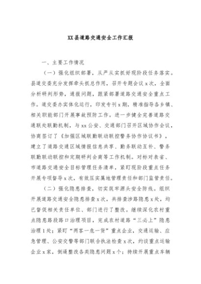/ 【七哥公文】2024年:XX县道路交通安全工作汇报+更多免费公文+VX:QiGeGongWen2024