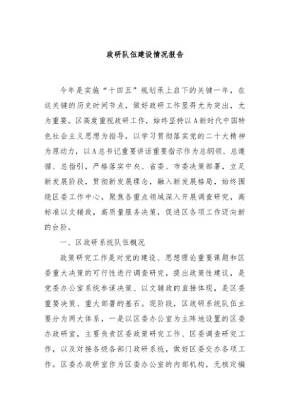 / 【七哥公文】2024年:政研队伍建设情况报告+更多免费公文+VX:QiGeGongWen2024