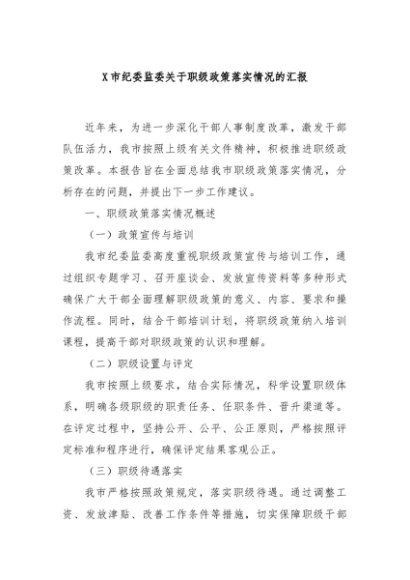 / 【七哥公文】2024年:X市纪委监委关于职级政策落实情况的汇报+更多免费公文+VX:QiGeGongWen2024