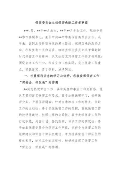 / 【七哥公文】2024年:保密委员会主任保密先进工作者事迹+更多免费公文+VX:QiGeGongWen2024