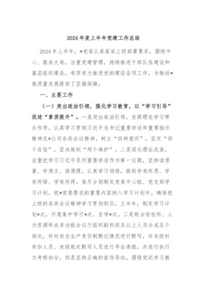 / 【七哥公文】2024年:2024年度上半年党建工作总结+更多免费公文+VX:QiGeGongWen2024