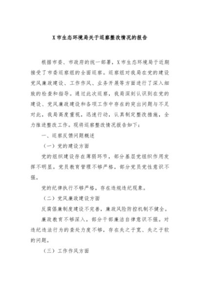 / 【七哥公文】2024年:X市生态环境局关于巡察整改情况的报告+更多免费公文+VX:QiGeGongWen2024