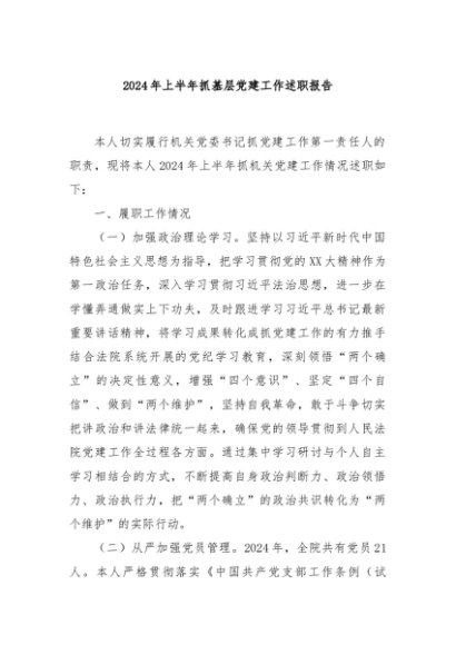 / 【七哥公文】2024年:2024年上半年抓基层党建工作述职报告+更多免费公文+VX:QiGeGongWen2024