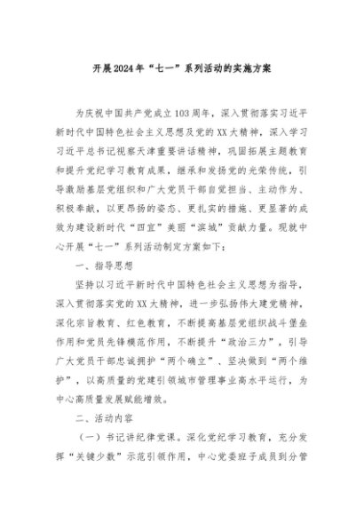 / 【七哥公文】2024年:开展2024年“七一”系列活动的实施方案+更多免费公文+VX:QiGeGongWen2024