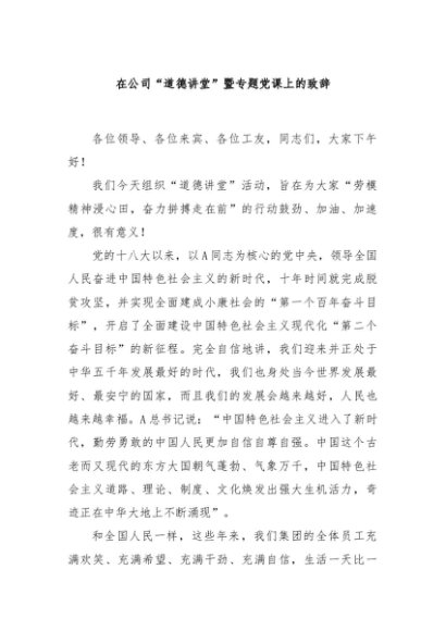 / 【七哥公文】2024年:在公司“道德讲堂”暨专题党课上的致辞+更多免费公文+VX:QiGeGongWen2024
