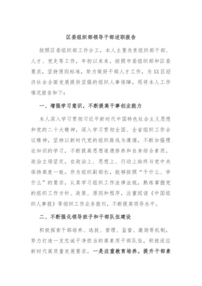 / 【七哥公文】2024年:区委组织部领导干部述职报告+更多免费公文+VX:QiGeGongWen2024