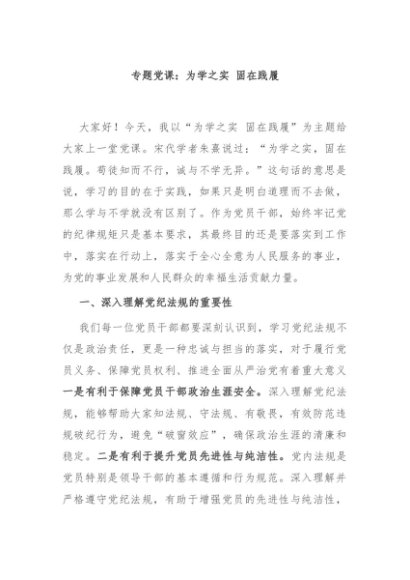 / 【七哥公文】2024年:专题党课:为学之实 固在践履+更多免费公文+VX:QiGeGongWen2024