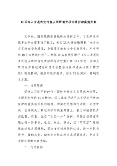 【七哥公文】2024年:XX区深入开展违法违规占用耕地专项治理行动实施方案+更多免费公文+VX:QiGeGongWen2024
