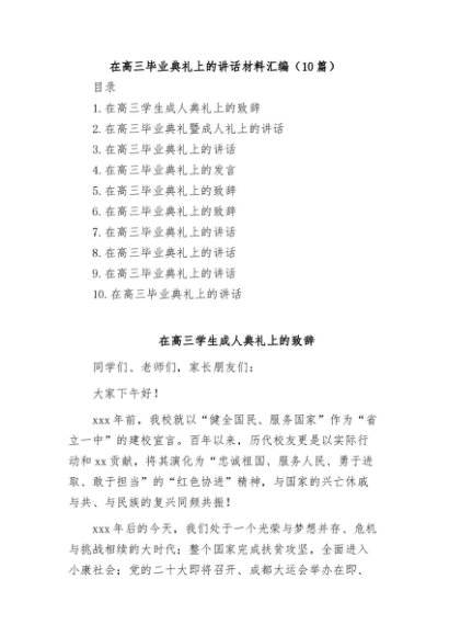 / 【七哥公文】2024年:在高三毕业典礼暨成人礼上的致辞讲话汇编+更多免费公文+VX:QiGeGongWen2024