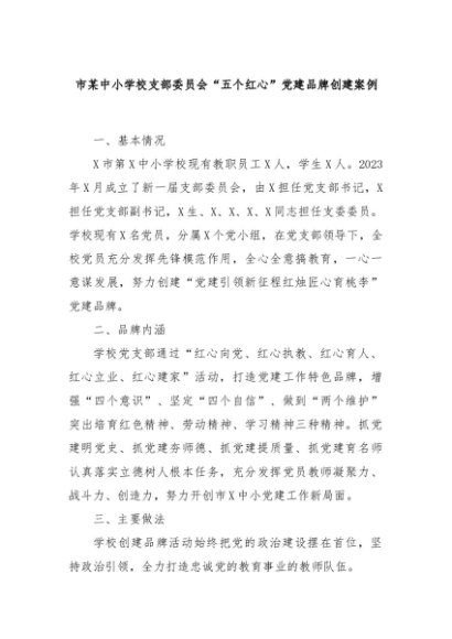 【七哥公文】2024年:市某中小学校支部委员会“五个红心”党建品牌创建案例+更多免费公文+VX:QiGeGongWen2024