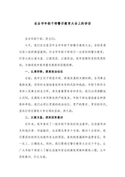 / 【七哥公文】2024年:在全市年轻干部警示教育大会上的讲话+更多免费公文+VX:QiGeGongWen2024