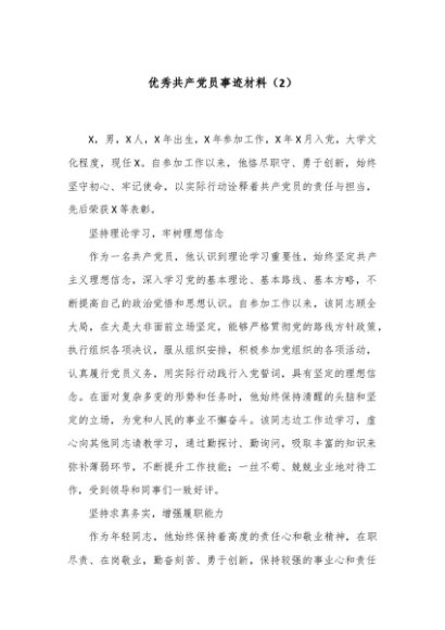 / 【七哥公文】2024年:优秀共产党员事迹材料(2)+更多免费公文+VX:QiGeGongWen2024