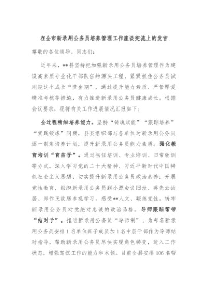 / 【七哥公文】2024年:在全市新录用公务员培养管理工作座谈交流上的发言+更多免费公文+VX:QiGeGongWen2024