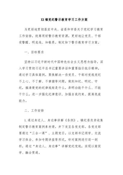 【七哥公文】2024年:XX镇党纪警示教育学习工作方案+更多免费公文+VX:QiGeGongWen2024