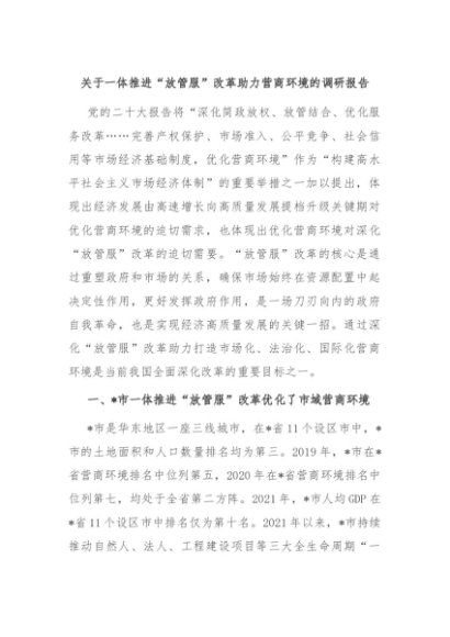 / 【七哥公文】2024年:关于一体推进“放管服”改革助力营商环境的调研报告+更多免费公文+VX:QiGeGongWen2024