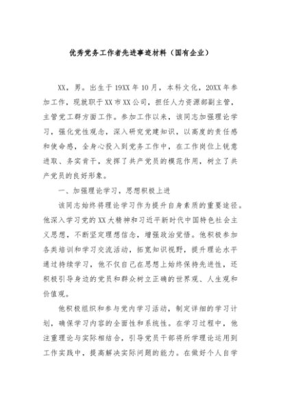 / 【七哥公文】2024年:优秀党务工作者先进事迹材料(国有企业)+更多免费公文+VX:QiGeGongWen2024