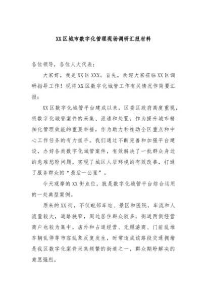 / 【七哥公文】2024年:XX区城市数字化管理现场调研汇报材料+更多免费公文+VX:QiGeGongWen2024