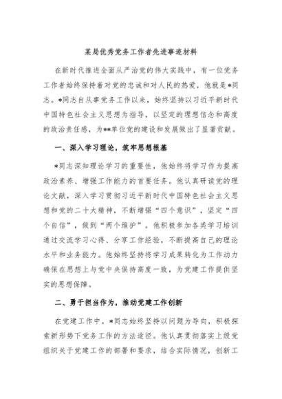 / 【七哥公文】2024年:某局优秀党务工作者先进事迹材料+更多免费公文+VX:QiGeGongWen2024