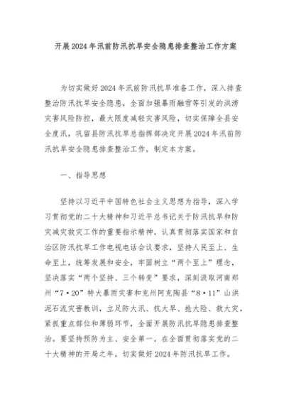 【七哥公文】2024年:开展2024年汛前防汛抗旱安全隐患排查整治工作方案+更多免费公文+VX:QiGeGongWen2024