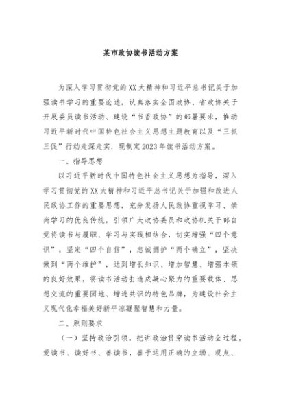 【七哥公文】2024年:某市政协读书活动方案+更多免费公文+VX:QiGeGongWen2024