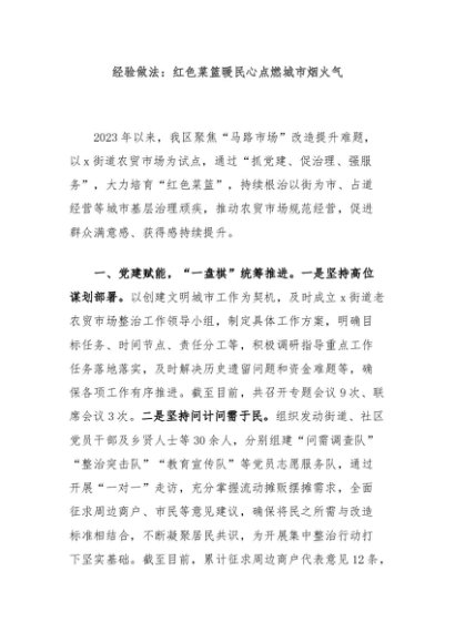 / 【七哥公文】2024年:经验做法:红色菜篮暖民心点燃城市烟火气+更多免费公文+VX:QiGeGongWen2024