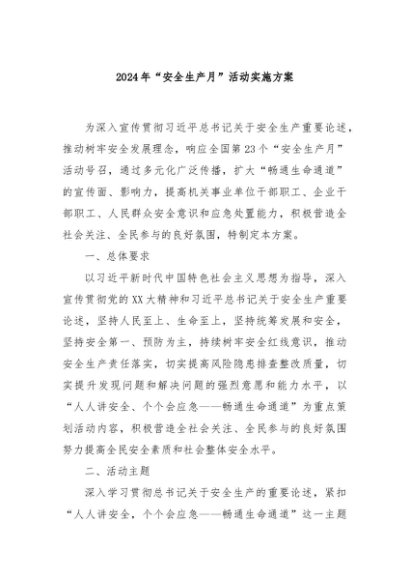 / 【七哥公文】2024年:2024年“安全生产月”活动实施方案+更多免费公文+VX:QiGeGongWen2024