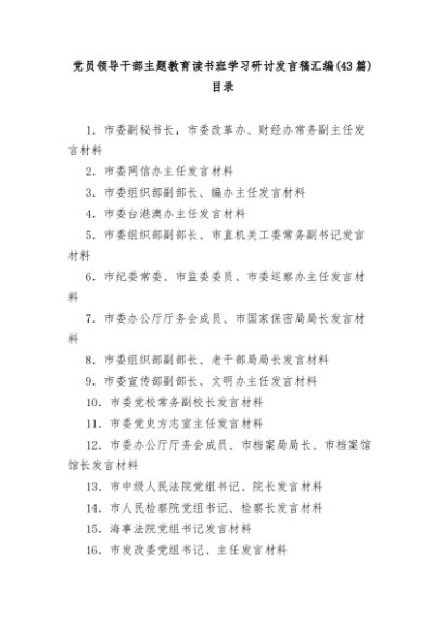 【七哥公文】2024年:(43篇)党员领导干部主题教育读书班学习研讨发言稿汇编+更多免费公文+VX:QiGeGongWen2024