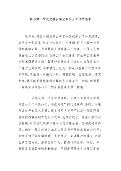 / 【七哥公文】2024年:新形势下有关完善乡镇政务公开工作的思考+更多免费公文+VX:QiGeGongWen2024