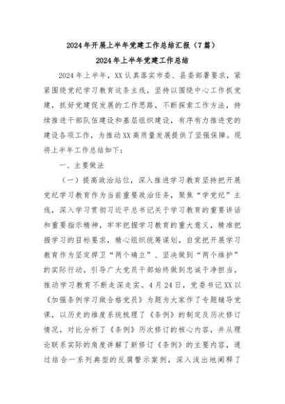 / 【七哥公文】2024年:(7篇)2024年开展上半年党建工作总结汇报合集+更多免费公文+VX:QiGeGongWen2024