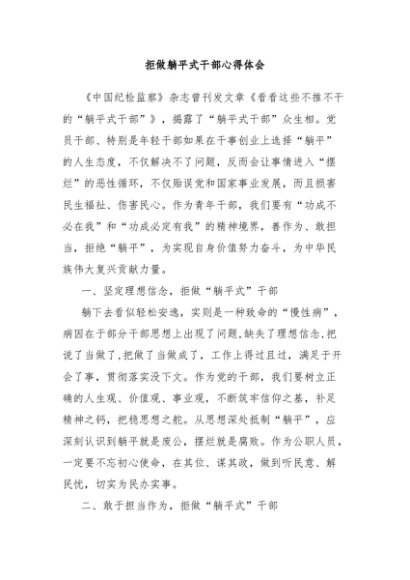 【七哥公文】2024年:拒做躺平式干部心得体会+更多免费公文+VX:QiGeGongWen2024