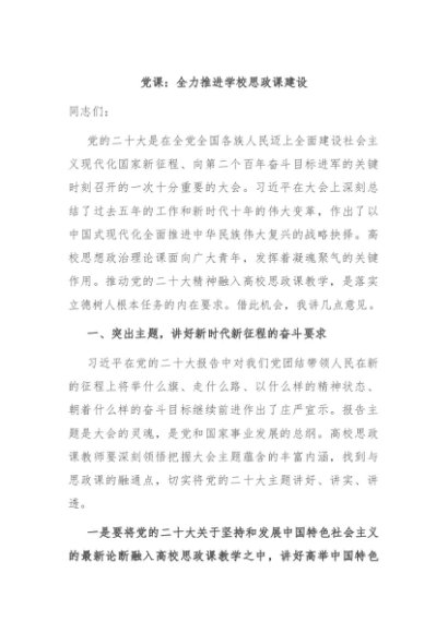 / 【七哥公文】2024年:党课:全力推进学校思政课建设+更多免费公文+VX:QiGeGongWen2024