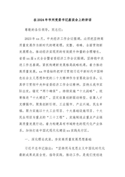 / 【七哥公文】2024年:在2024年市州党委书记座谈会上的讲话+更多免费公文+VX:QiGeGongWen2024