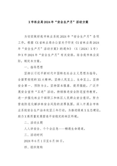 / 【七哥公文】2024年:X市林业局2024年“安全生产月”活动方案+更多免费公文+VX:QiGeGongWen2024