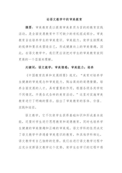 【七哥公文】2024年:论语文教学中的审美教育+更多免费公文+VX:QiGeGongWen2024