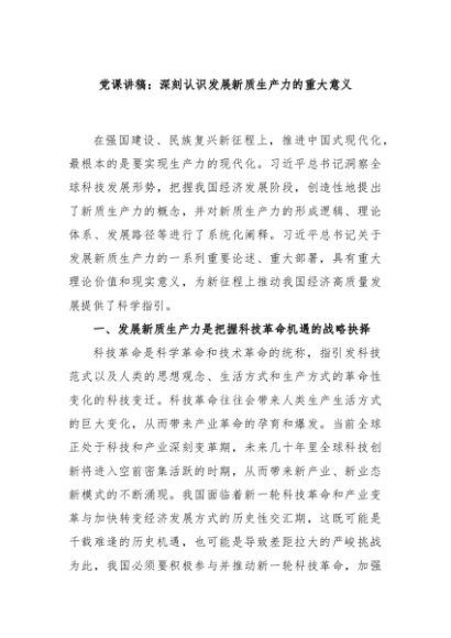 / 【七哥公文】2024年:党课讲稿:深刻认识发展新质生产力的重大意义+更多免费公文+VX:QiGeGongWen2024