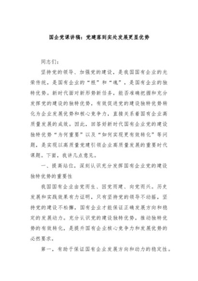 / 【七哥公文】2024年:国企党课讲稿:党建落到实处发展更显优势+更多免费公文+VX:QiGeGongWen2024