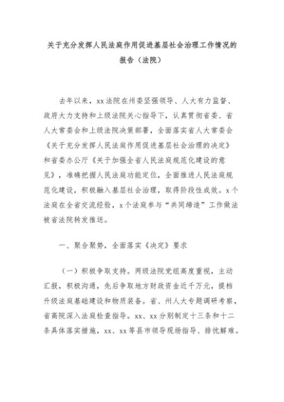 【七哥公文】2024年:关于充分发挥人民法庭作用促进基层社会治理工作情况的报告(法院)+更多免费公文+VX:QiGeGongWen2024