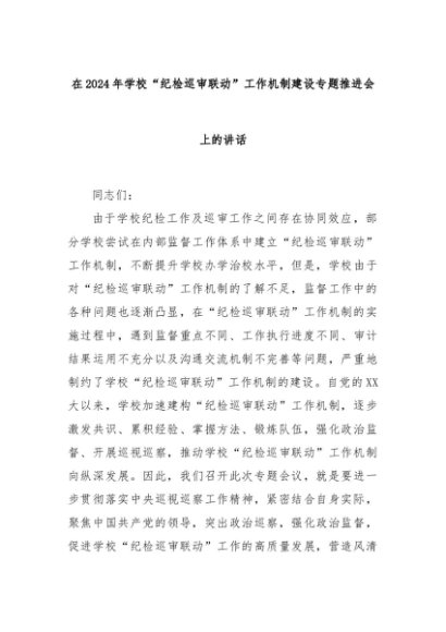 【七哥公文】2024年:在2024年学校“纪检巡审联动”工作机制建设专题推进会上的讲话+更多免费公文+VX:QiGeGongWen2024