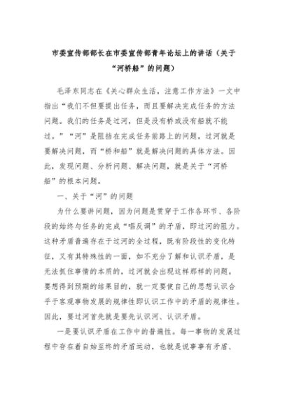 【七哥公文】2024年:市委宣传部部长在市委宣传部青年论坛上的讲话(关于“河桥船”的问题)+更多免费公文+VX:QiGeGongWen2024