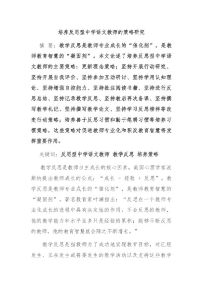 【七哥公文】2024年:培养反思型中学语文教师的策略研究+更多免费公文+VX:QiGeGongWen2024
