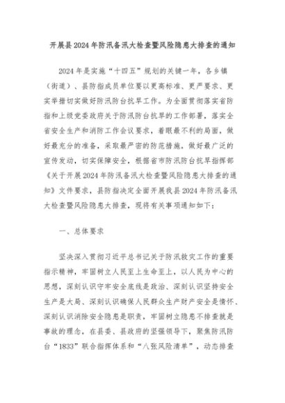 【七哥公文】2024年:开展县2024年防汛备汛大检查暨风险隐患大排查的通知+更多免费公文+VX:QiGeGongWen2024