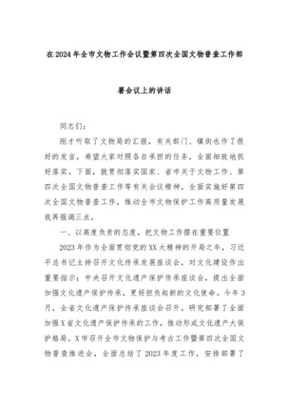 【七哥公文】2024年:在2024年全市文物工作会议暨第四次全国文物普查工作部署会议上的讲话+更多免费公文+VX:QiGeGongWen2024