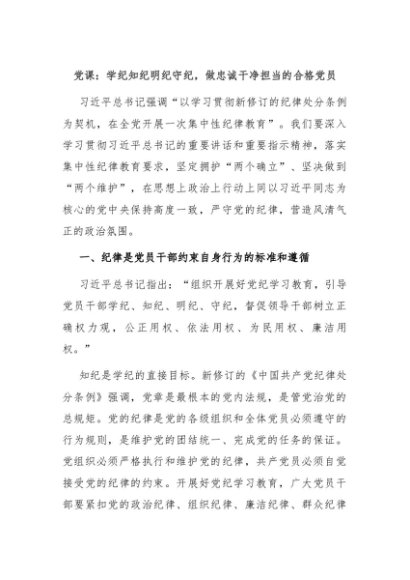 / 【七哥公文】2024年:党课:学纪知纪明纪守纪,做忠诚干净担当的合格党员+更多免费公文+VX:QiGeGongWen2024