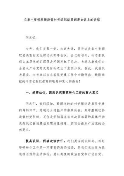 / 【七哥公文】2024年:在集中整顿软弱涣散村党组织动员部署会议上的讲话+更多免费公文+VX:QiGeGongWen2024